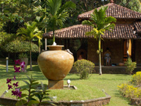 Our guests continued to be amazed by the beautifully designed and maintained Garden with fountains, flowering exotic plants, palms and fruit trees. Unusual birds delight us with their songs. The entertaining chipmunks scurry past. Chameleons change their colour. Geckos guack. And in the overgrown neighbouring site monkey families jump from tree to tree. read more..